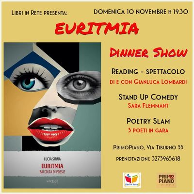 - Gianluca Lombardi con un reading tratto dalla raccolta di poesie “Euritimia” di Lucia Sirna. Uno spettacolo che abbraccia l’ironia della poetica di L.Sirna, generando spunti di riflessione e ben più di un sorriso.